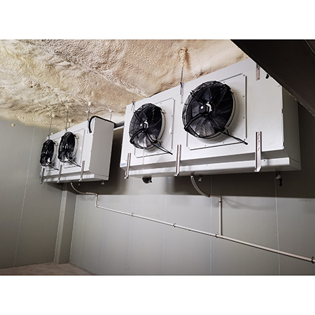 利用壓縮機(jī)排氣的高溫制冷劑來化霜,環(huán)保節(jié)能; 自動(dòng)熱氟融霜,除霜速度快、效果好、能耗小; 自動(dòng)熱氟融霜是靠電腦自動(dòng)化控制的,當(dāng)冷庫(kù)內(nèi)需要融霜時(shí)